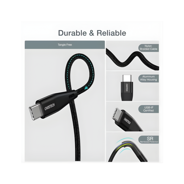 CHOETECH USB-C TO USB-C 60W BRAIDED CABLE 2M (XCC-1004)