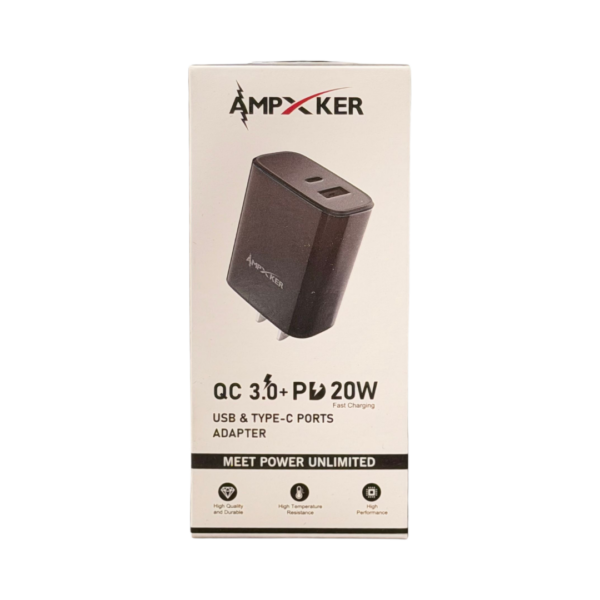 HR PRODUCTS USB & TYPE C – DUAL PORT – ADAPTER QC 3.0 AMP + PD 20W BLACK